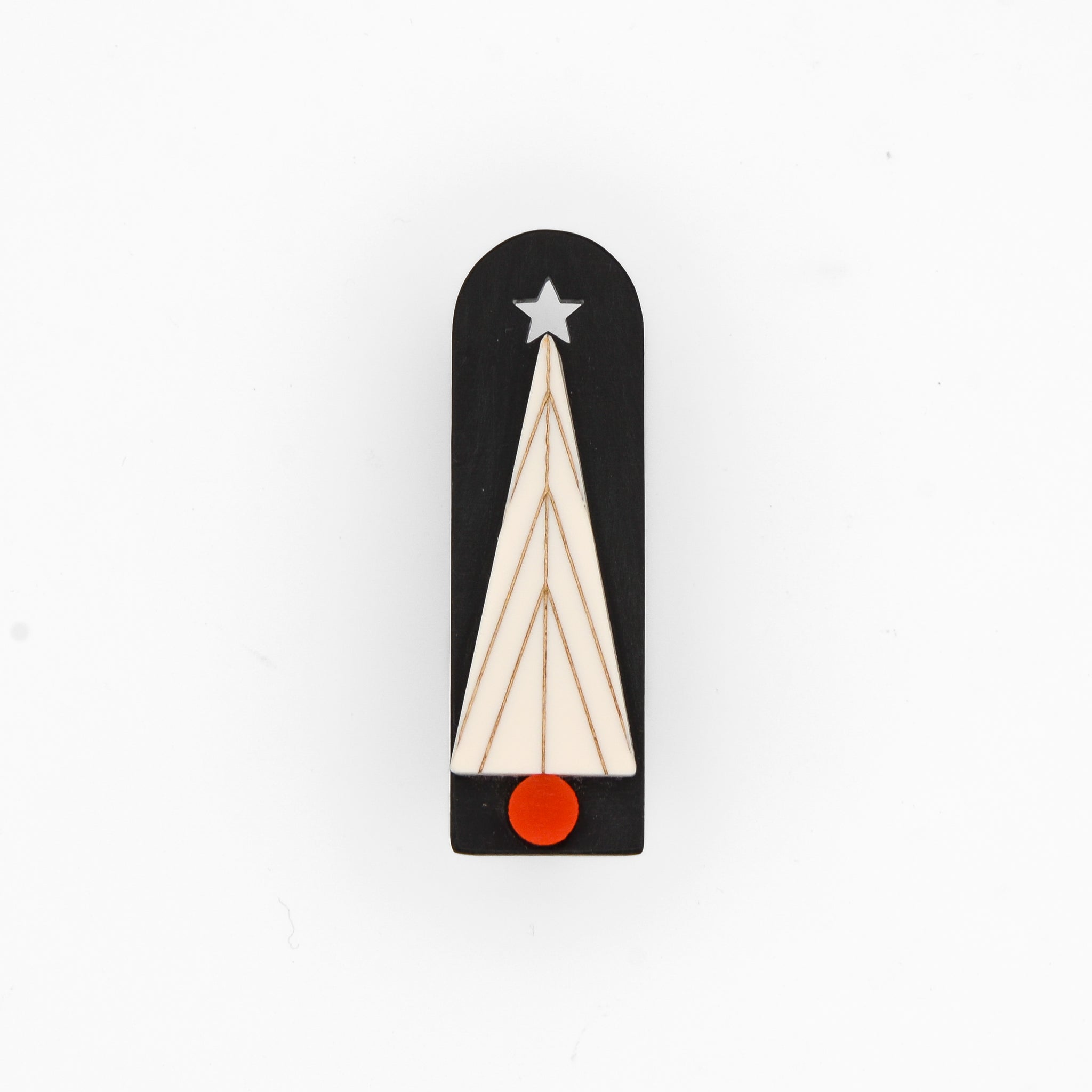 Sophisticated + festive without being over the top – our modern Christmas tree lapel pins are perfect for mid-century modern + Scandinavian design lovers! An ode to yesteryear – these darling pins whisk us back to fond memories of festive gatherings with family + friends.