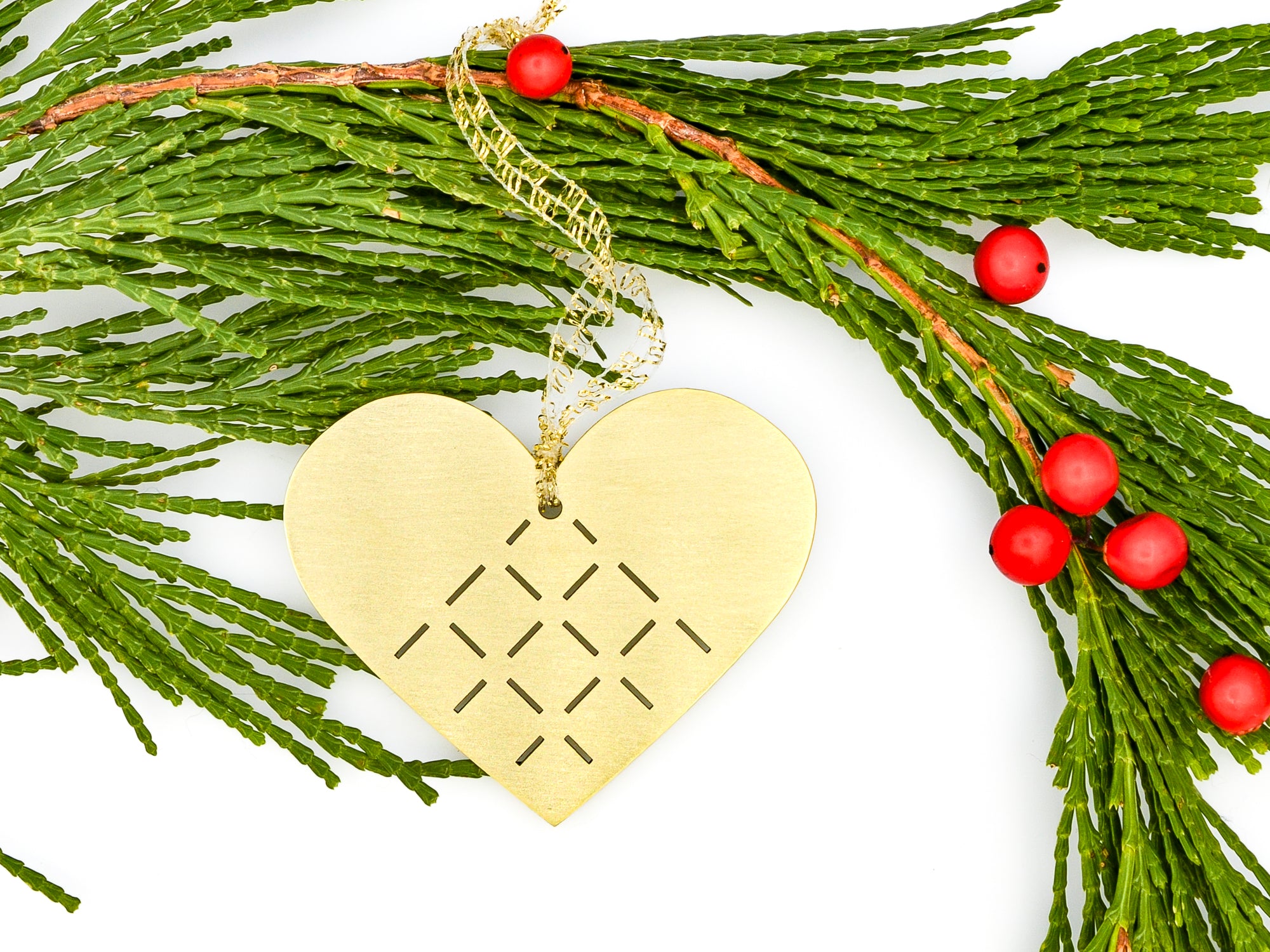 Add a touch of Nordic charm to your holiday tree with our original woven heart ornament. Inspired by the traditional Scandinavian Christmas basket (or "julehjerter"), this sweet design features our signature geometric pattern in beautiful brushed brass.
